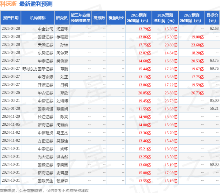 最新盈利预测明细如下: